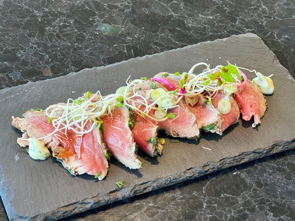 • Carpaccio of dry aged angus beef fillet, herb cream