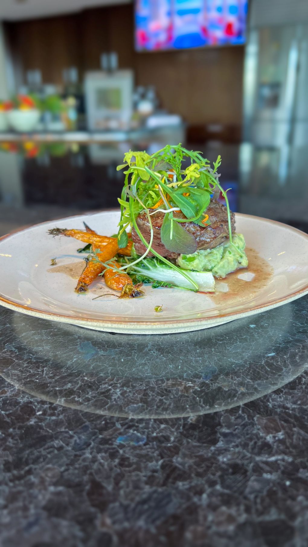 • Fillet of beef, honey roast carrots, red wine sauce